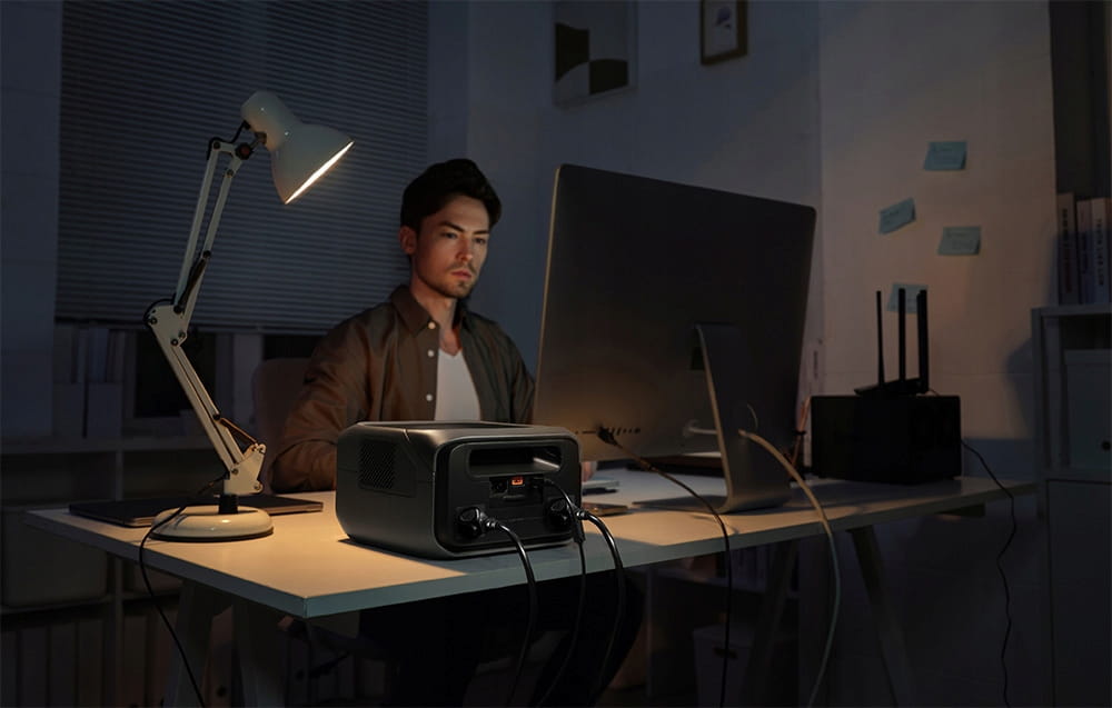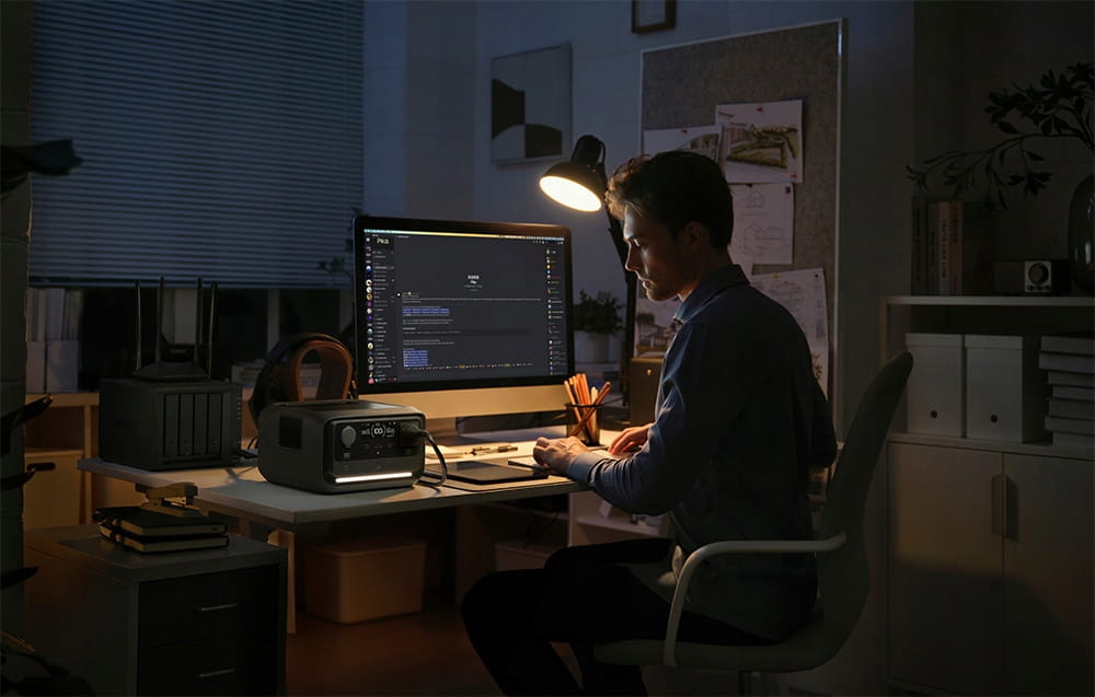 Dzięki funkcji UPS (zasilania awaryjnego) EcoFlow RIVER 3 Plus przełącza się na tryb akumulatorowy w czasie poniżej 10 ms. Ciągłość zasilania w przypadku nagłych przerw w dostawie prądu jest szczególnie przydatna w domowych biurach, jako że chroni laptopy, systemy NAS i inne wrażliwsze sprzęty przed utratą danych.