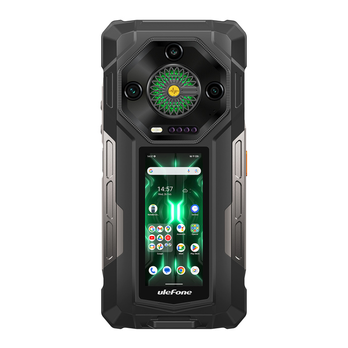 Ulefone Armor 33 Pro wyróżnia się unikalnym rozwiązaniem – posiada nie tylko 6,95-calowy ekran AMOLED FHD+, ale również dodatkowy 3,4-calowy ekran dotykowy na pleckach. Ten drugi wyświetlacz w pełni odzwierciedla zawartość głównego, co pozwala wygodnie obsługiwać powiadomienia, sterować muzyką, prowadzić wideorozmowy czy robić zdjęcia w nietypowych pozycjach. To funkcja, która znacząco zwiększa praktyczność urządzenia.