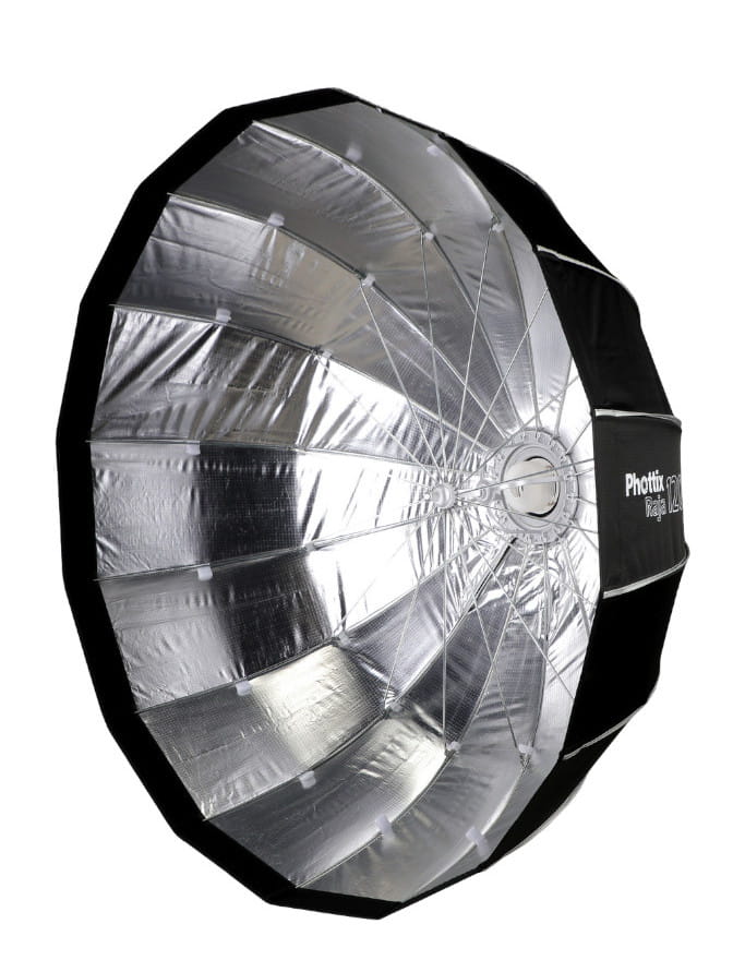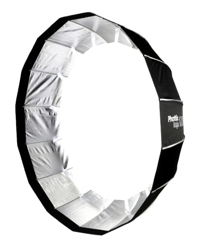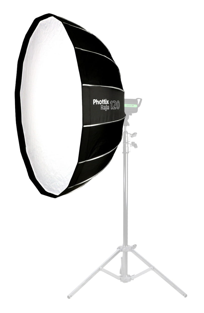 Raja 120 model w topowej serii softboxów Phottix Raja. Konstrukcja modyfikatora wykonana jest z trwałego i odpornego na wysoką temperaturę materiału Techtec. To co wyróżnia Raję na tle konkurencji to opatentowany przez markę Phottix system szybkiego montażu. Softbox otwiera się jak parasol dzięki scentralizowanemu metalowemu złączeniu umożliwiającemu przygotowanie softboxu do pracy w kilka sekund.