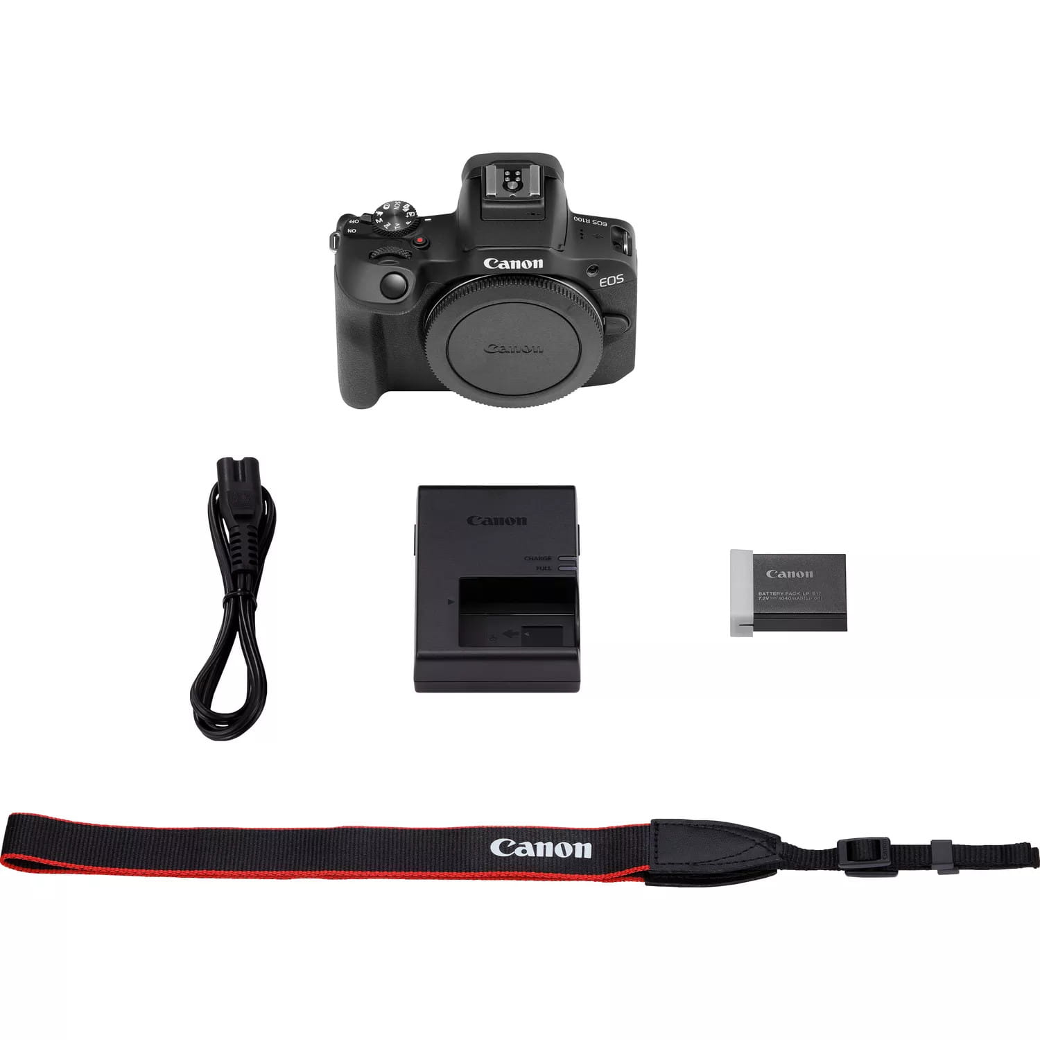 | Wyposażenie | Korpus aparatu bezlusterkowego EOS R100, Dekiel na korpus R-F-5, Pasek na szyję EM-200DB, Ładowarka LC-E17E, Akumulator LP-E17, Osłona akumulatora, Przewód zasilający, Zestaw instrukcji obsługi |