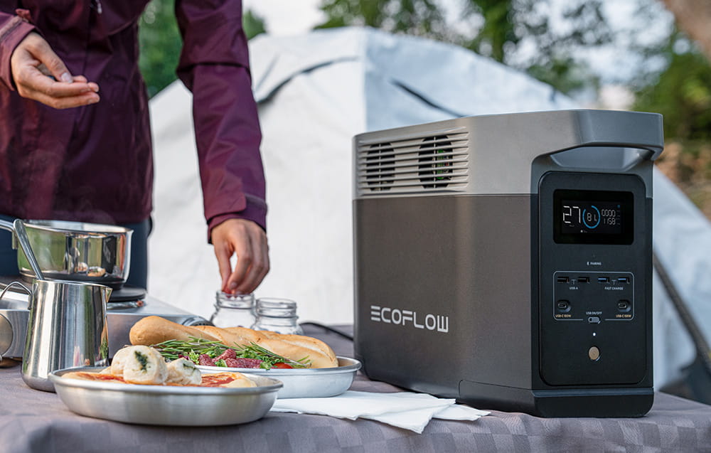 EcoFlow DELTA 2 to przenośna stacja zasilania, która pozwoli Ci przygotować się na nieprzewidziane okoliczności. Dzięki wysokiej mocy wyjściowej dostarczy energii większości Twoich urządzeń, gdy zabraknie prądu lub wybierzesz się w podróż kamperem. Technologia X-Stream umożliwia jej szybkie ładowanie, a aplikacja EcoFlow zapewni wygodny dostęp do najważniejszych funkcji i ustawień. Stacja wyróżnia się pojemnością 1024 Wh, którą można rozszerzyć za pomocą dodatkowych akumulatorów. DELTA 2 jest przy tym zaskakująco lekka i łatwa w przenoszeniu. Możesz też ładować ją na kilka sposobów.