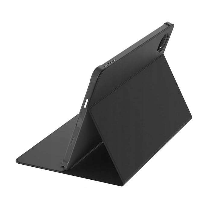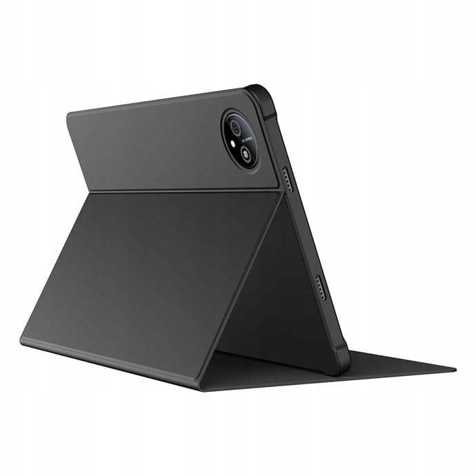 Wnętrze etui jest wyściełane miękką tkaniną, która chroni ekran przed uszkodzeniami. Dodatkowo, etui ma wbudowaną funkcję podstawki, pozwalającą na komfortowe ustawienie tabletu w pozycji poziomej, idealnej do oglądania filmów, czytania lub pracy.