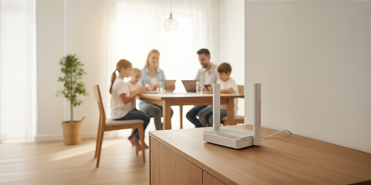 Router oferuje nowoczesne zabezpieczenia Wi-Fi, w tym WPA2-PSK, WPA3-PSK, WPA2/WPA3-Enterprise oraz OWE. Wbudowany firewall SPI chroni przed nieautoryzowanym dostępem z zewnątrz, a obsługa VPN umożliwia bezpieczne połączenia zdalne. Możliwość utworzenia do 7 sieci Wi-Fi (SSID) pozwala oddzielić sieć domową od gościnnej. System KeeneticOS daje pełną kontrolę nad ustawieniami – zarówno z poziomu przeglądarki WWW, jak i aplikacji mobilnej na Android i iOS. To rozwiązanie, które dba o prywatność i bezpieczeństwo całej rodziny.