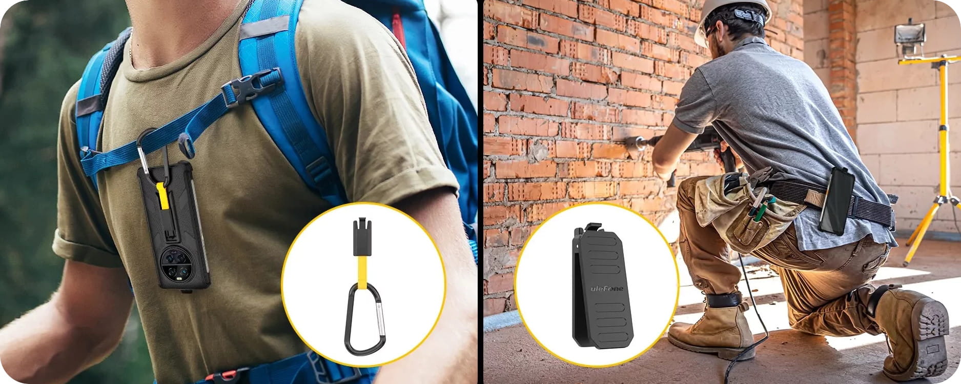 Etui możesz dostosować do indywidualnych potrzeb. Wybierz obracający się o 180° klips lub solidny karabińczyk. Możesz dodać te elementy do etui ochronnego, aby mieć telefon zawsze pod ręką, bez konieczności noszenia go w kieszeni.