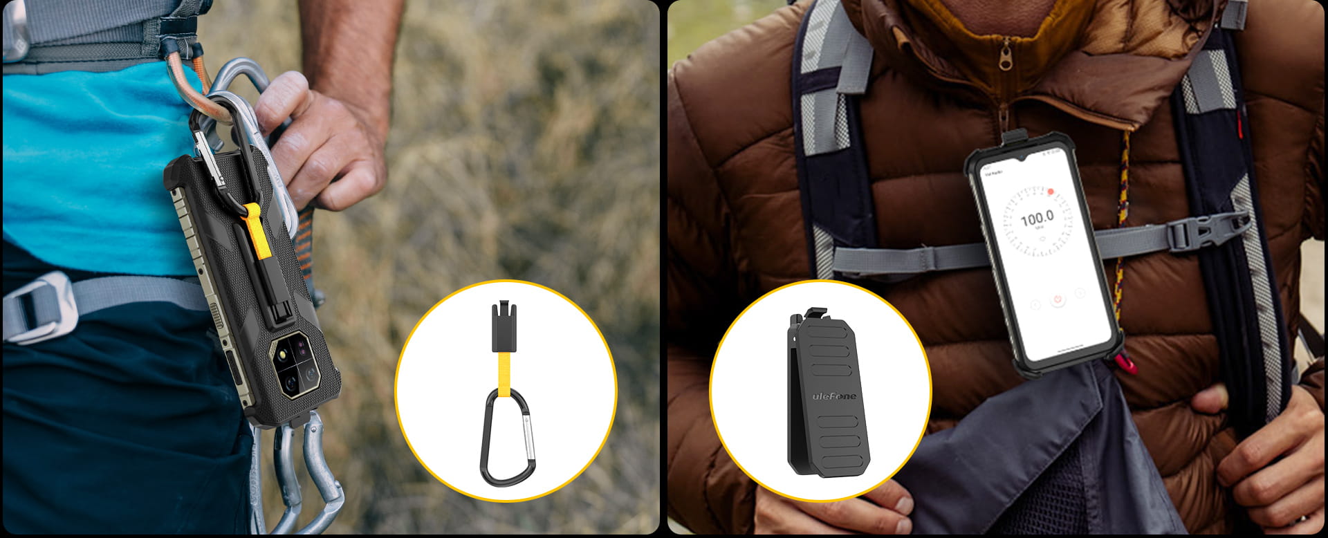Etui możesz dostosować do indywidualnych potrzeb. Wybrać obracający się o 180° klips lub solidny karabińczyk. Możesz dodać te elementy do etui ochronnego, aby mieć telefon zawsze pod ręką, bez konieczności noszenia go w kieszeni.