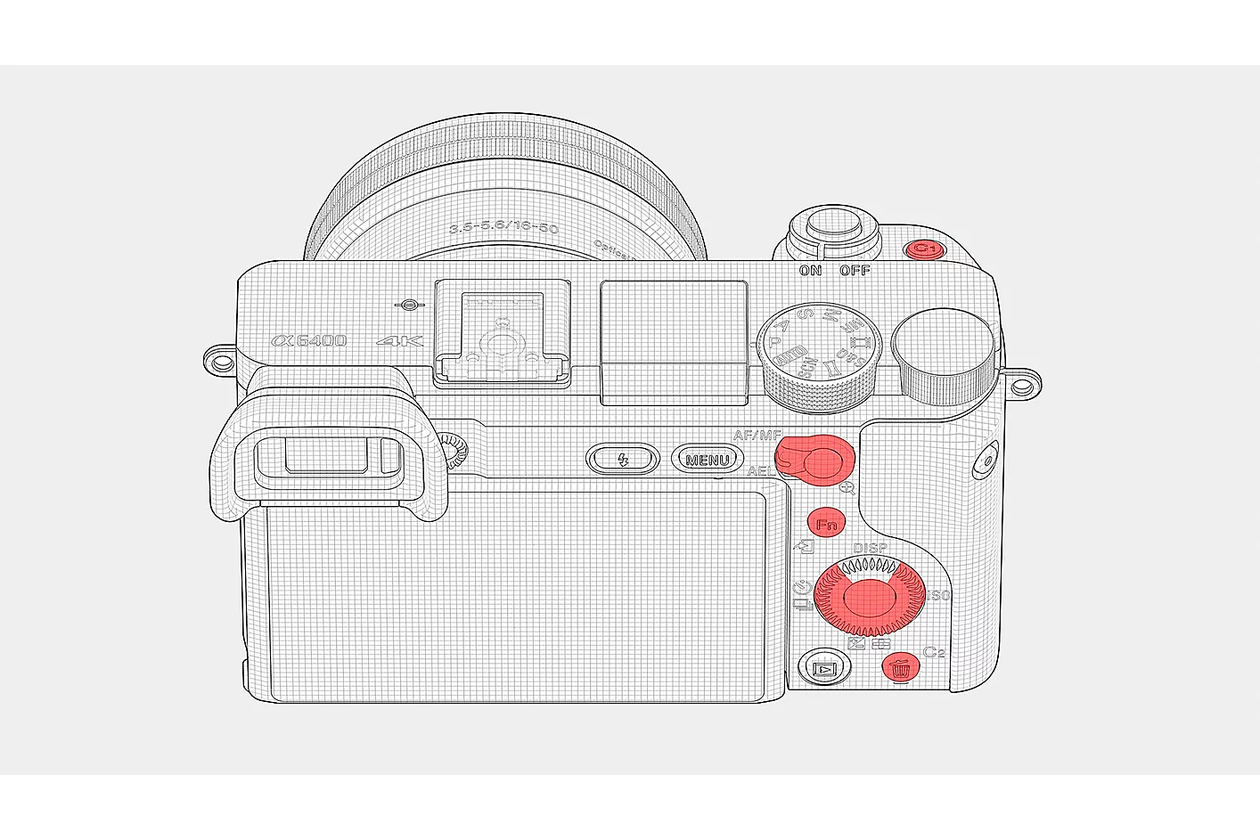 Do każdego z ośmiu przycisków aparatu i elementów sterujących można przypisać jedną z 89 funkcji lub operacji, wliczając w to różnorodność operacji zależną od tego, czy użytkownik fotografuje, nagrywa, czy przegląda wyniki swojej pracy.