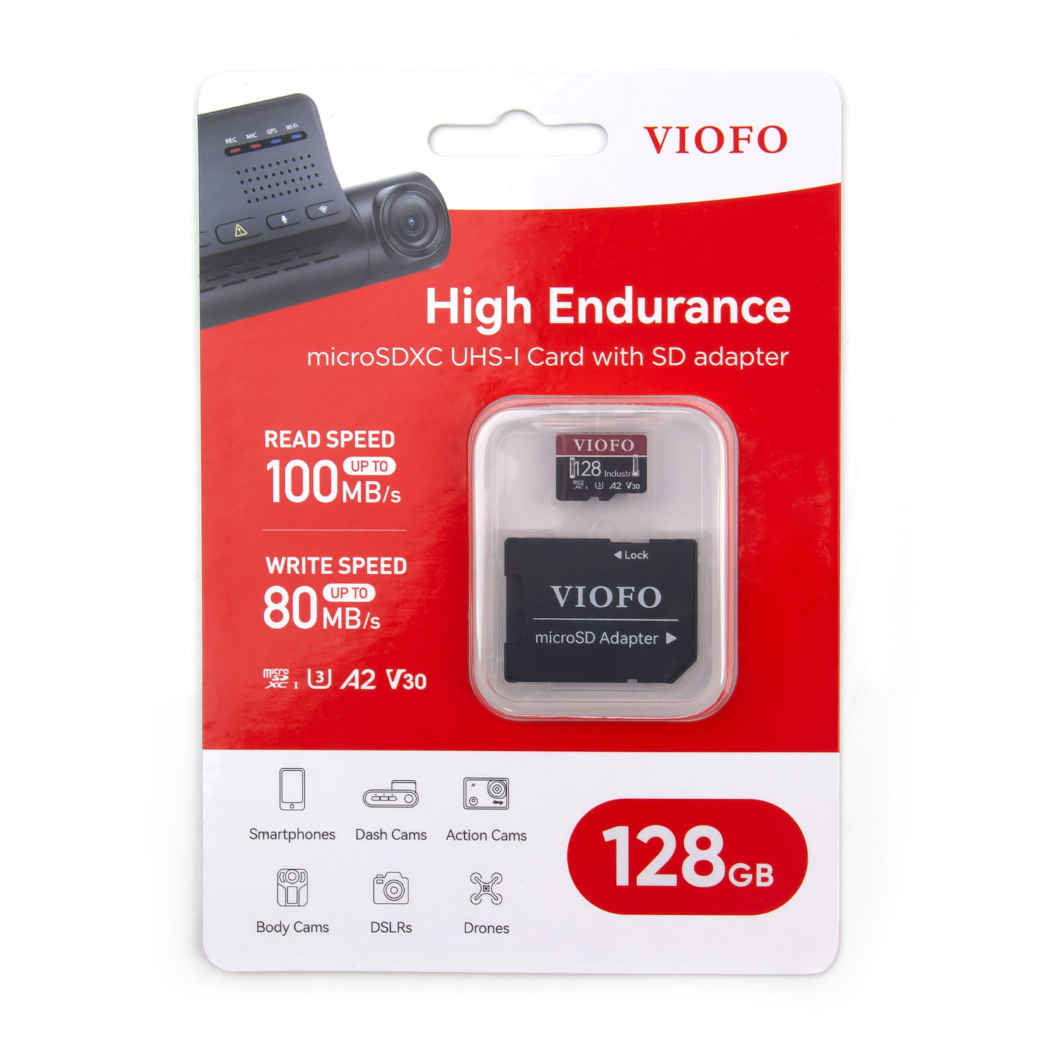 + VIOFO INDUSTRIAL 128GB KARTA PAMIĘCI MICROSDXC DO REJESTRATORÓW - UHS-I U3 100/80 MB/s V30 A2