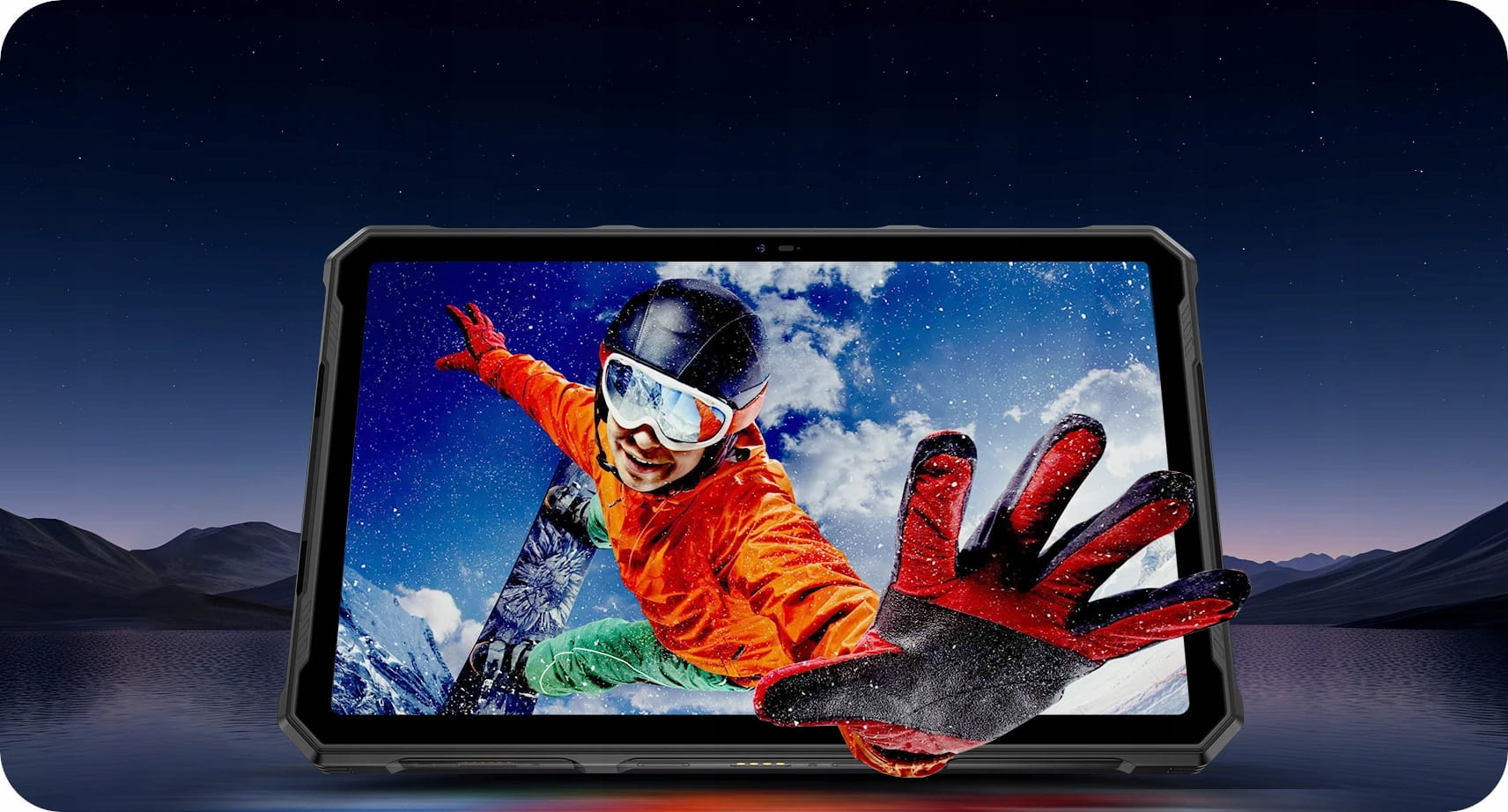 Niezwykle wytrzymała konstrukcja wykonana z wysokiej jakości tworzyw sztucznych zapewnia wysoką odporność na upadki i silne uderzenia. Podwyższone krawędzie wokół kamer i światła LED oraz specjalnie wzmocnione narożniki dodatkowo zwiększają wytrzymałość tabletu.
