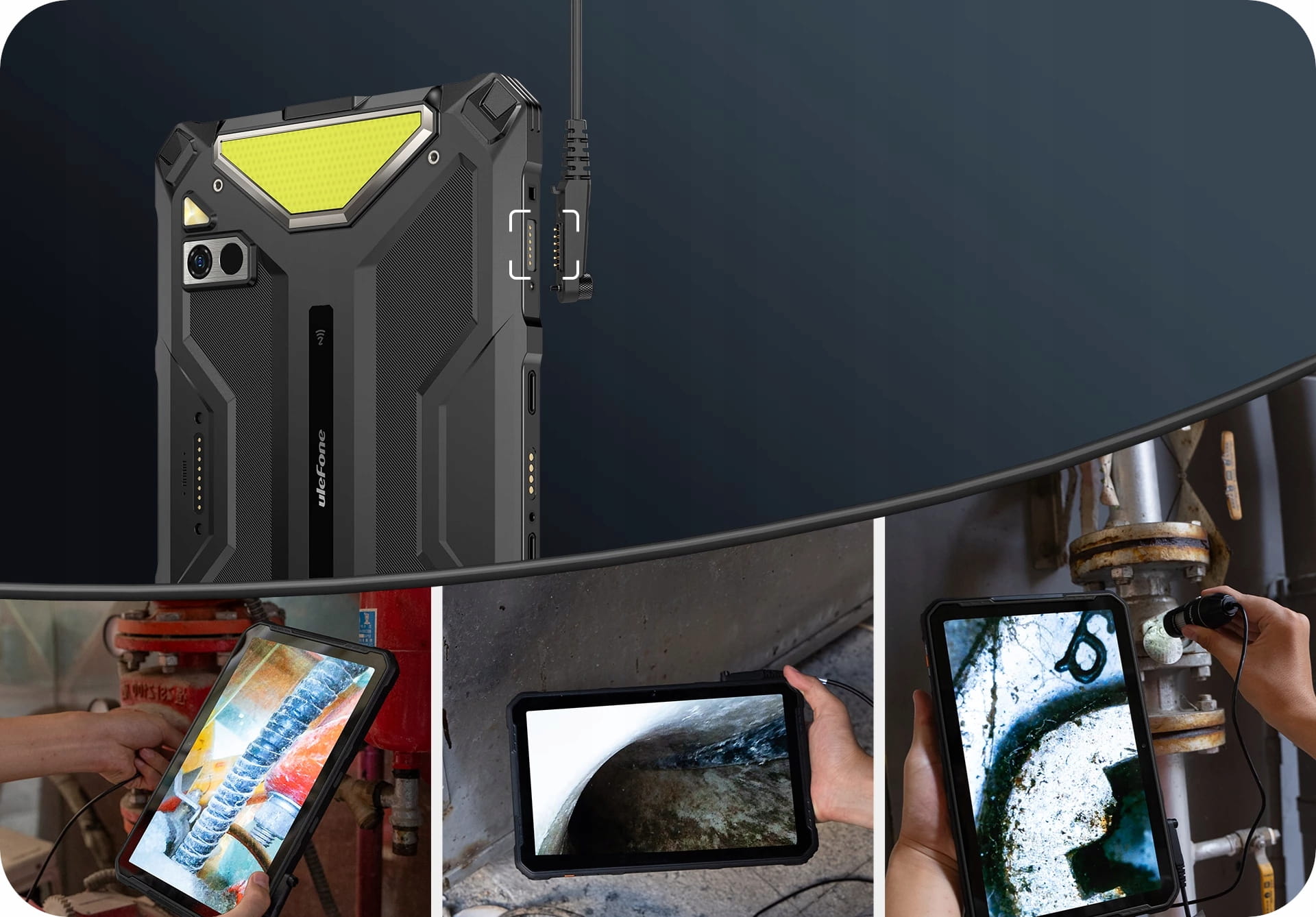 Unikalny dedykowany port uSmart umożliwia korzystanie z akcesoriów, takich jak kamery endoskopowe czy mikroskop uSmart C01. Jego niezawodne połączenie ułatwia pracę podczas konserwacji pojazdów, inspekcji rur i podobnych czynności.