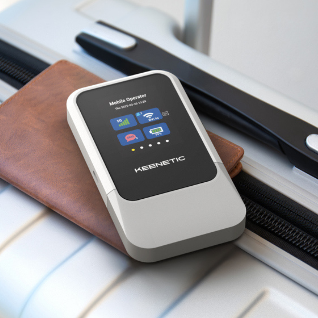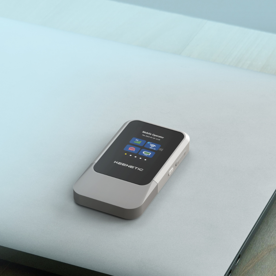Pozostań w kontakcie przez cały dzień dzięki kompaktowemu, eleganckiemu urządzeniu Keenetic Roamer 5G. Intuicyjny, kolorowy wyświetlacz pozwoli Ci na pierwszy rzut oka sprawdzać moc sygnału, wykorzystanie danych i żywotność baterii. Unikaj ryzykownych publicznych sieci Wi-Fi i korzystaj z prywatnej, szyfrowanej sieci, gdziekolwiek jesteś. Lekkie i przenośnwe urządzenie Roamer 5G zapewnia lepsze połączenie — bezpieczne, szybkie i gotowe zawsze, gdy jest potrzebne.