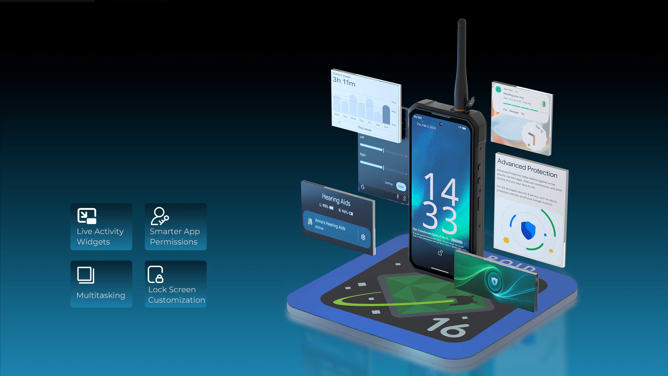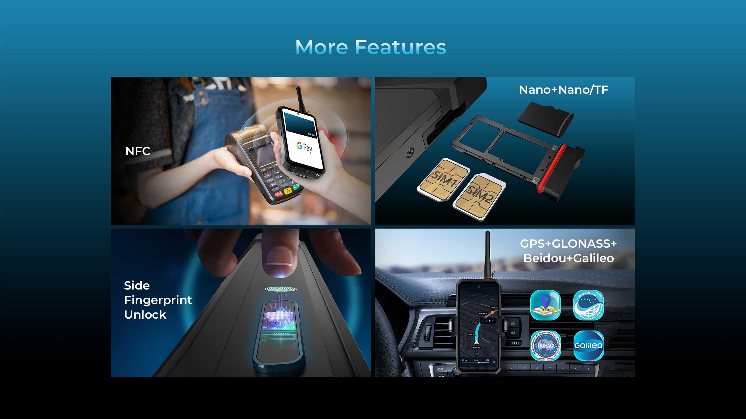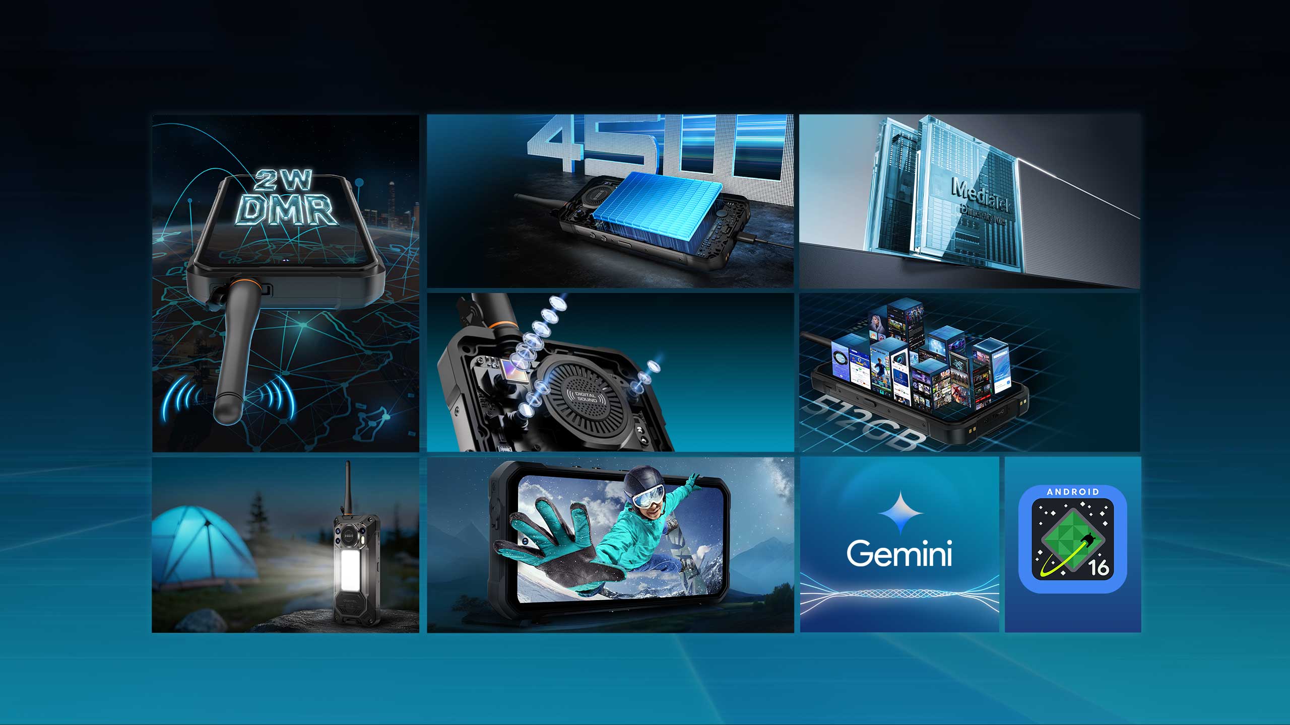 Spełnia najwyższe standardy — IP68, IP69K oraz MIL-STD-810H — WP61 Plus jest odporny na kurz, upadki z wysokości 1,5 m, strumienie wody pod wysokim ciśnieniem oraz ekstremalne temperatury od -45°C do 75°C. Idealny do przygód w terenie, podróży off-road, placów budowy, magazynów i wymagających środowisk pracy.