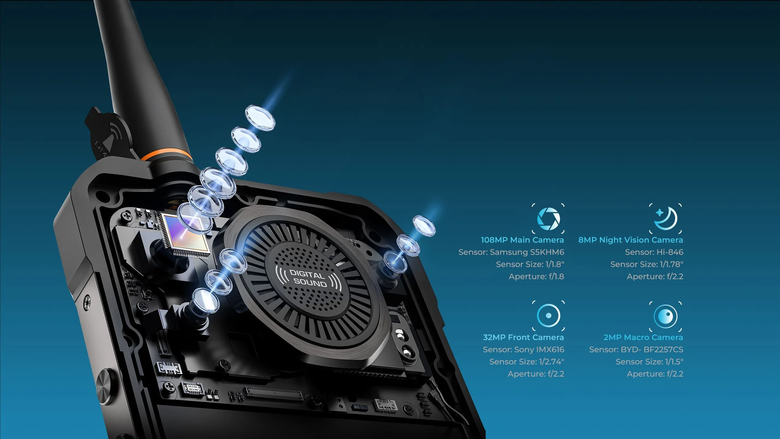 | Wbudowany aparat | Główny 108MP / Night Vision 8MP / Makro 2MP / Przedni 32MP |