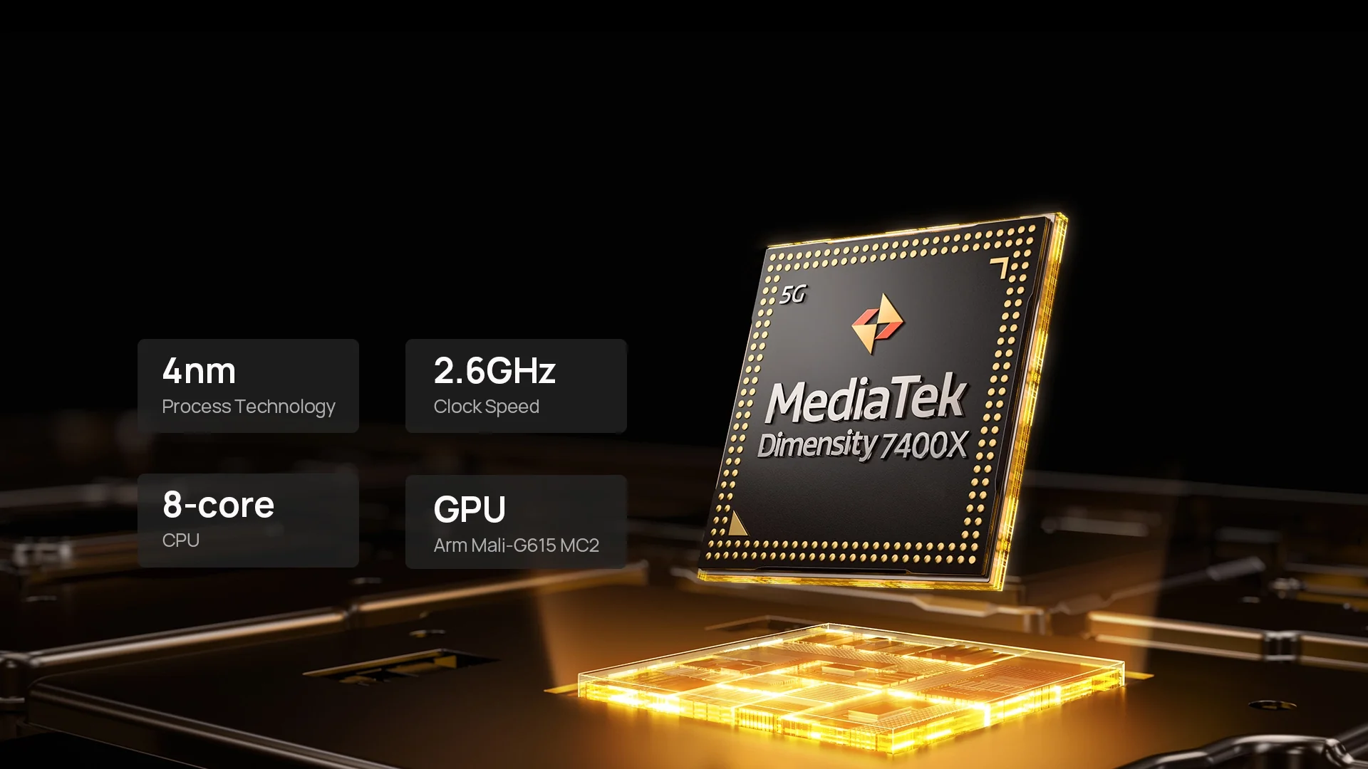 - Model procesora: MediaTek Dimensity 7400X MT6878V/TF (Octa-core (4x2.6 GHz Cortex-A78 & 4x2.0 GHz Cortex-A55))