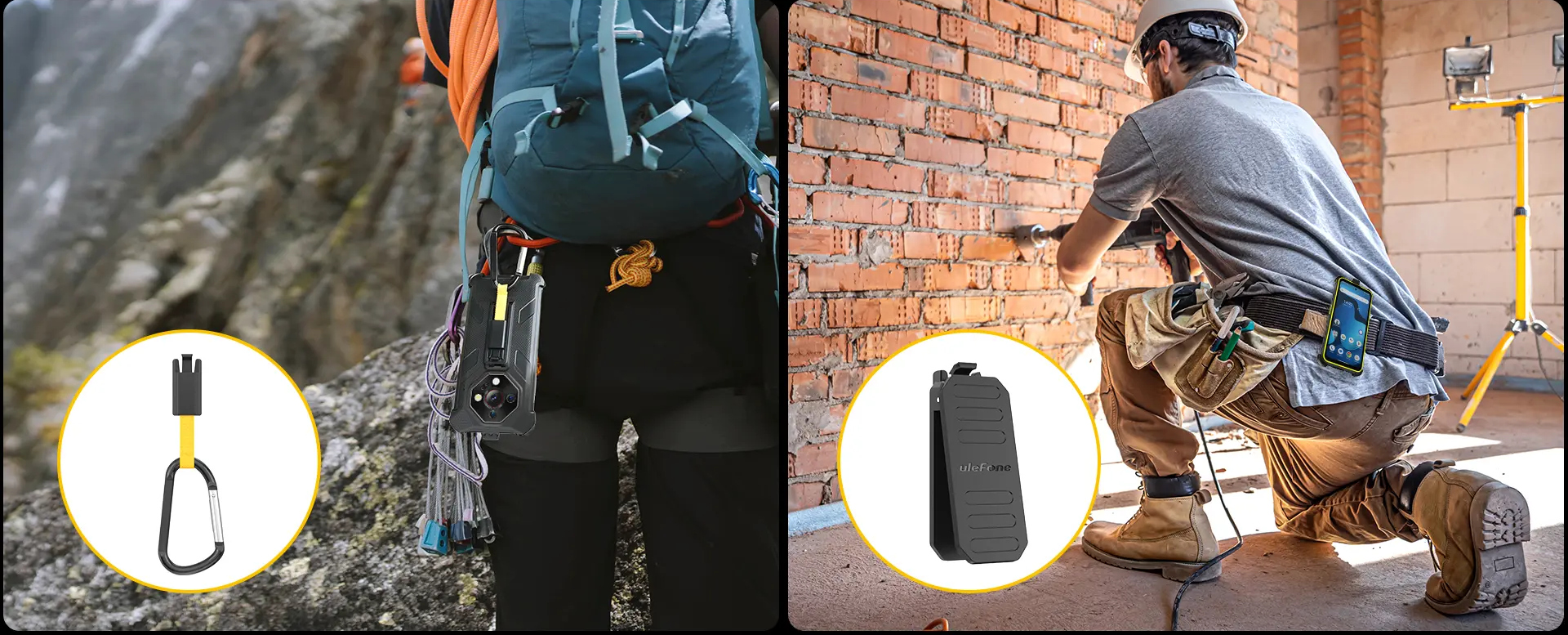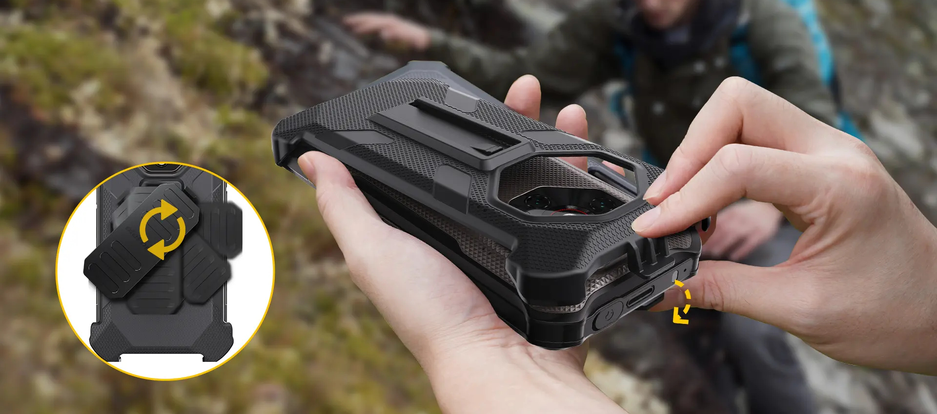 Spersonalizowane etui ochronne, 180° obrotowy klips z tyłu oraz bezpieczny karabińczyk – wszystko w jednym. W razie potrzeby możesz dodać klips lub karabińczyk do etui, aby mieć telefon zawsze pod ręką, bez konieczności noszenia go w kieszeni.
