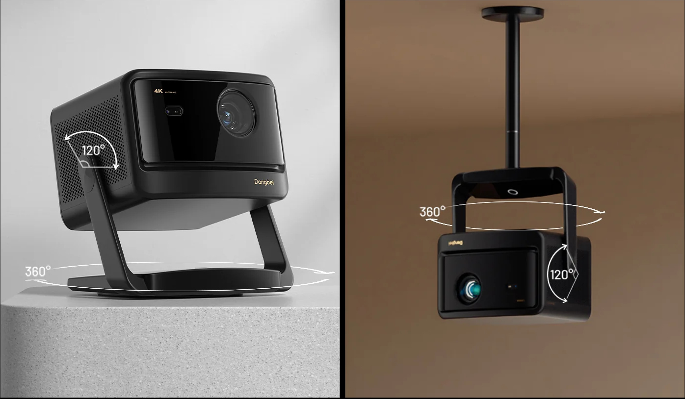 Wbudowana podstawka pozwala na obrót 360° w poziomie i nachylenie 120° w pionie. Przemeblowanie pokoju? Żaden problem. Możesz łatwo dostosować kąt projekcji w dowolnym momencie i miejscu – dla idealnego ustawienia za każdym razem.