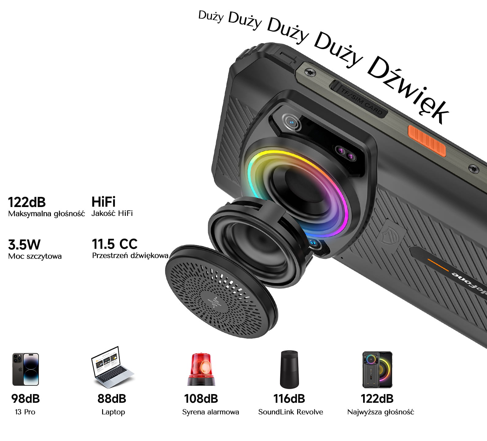 Potężny głośnik z obręczą świetlną to nie jedyna niespodzianka. Zupełnie nowe dźwięki powiadomień zostały stworzone specjalnie dla Armor 21!