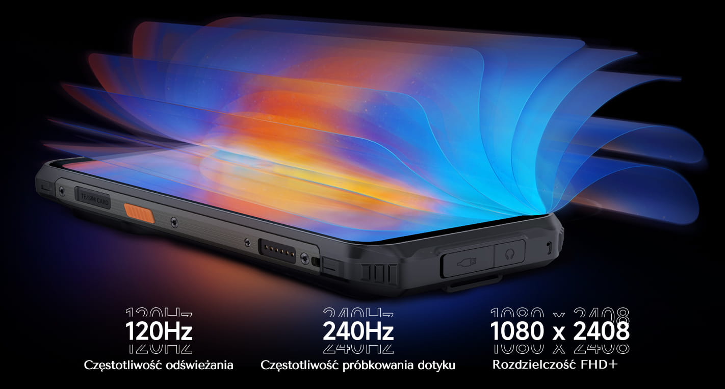 Armor 21 został wyposażony w 6,58-calowy ekran FHD+ o rozdzielczości 1080 x 2408. Wysoka częstotliwość odświeżania 120 Hz i częstotliwość próbkowania dotyku 240 Hz sprawiają, że jest on niezwykle szybki i płynny podczas przetwarzania zadań, przeglądania stron internetowych i grania w gry.