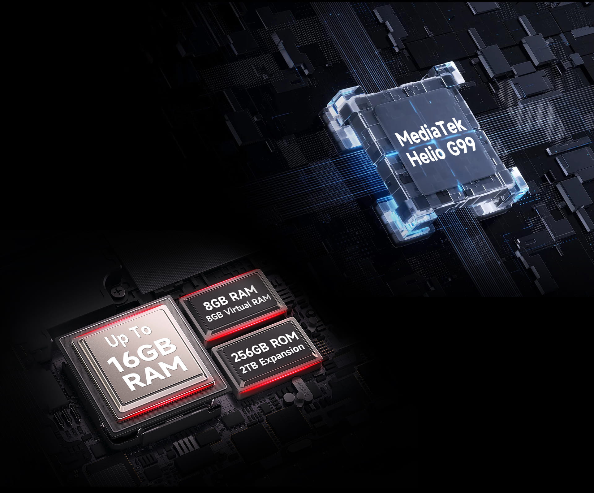 Procesor MediaTek Helio G99 posiada 8 rdzeni o taktowaniu 2,2 GHz. Zapewnia to wyjątkową płynność i wydajność, niezależnie od tego, czy grasz w gry, czy korzystasz z wielu aplikacji jednocześnie.