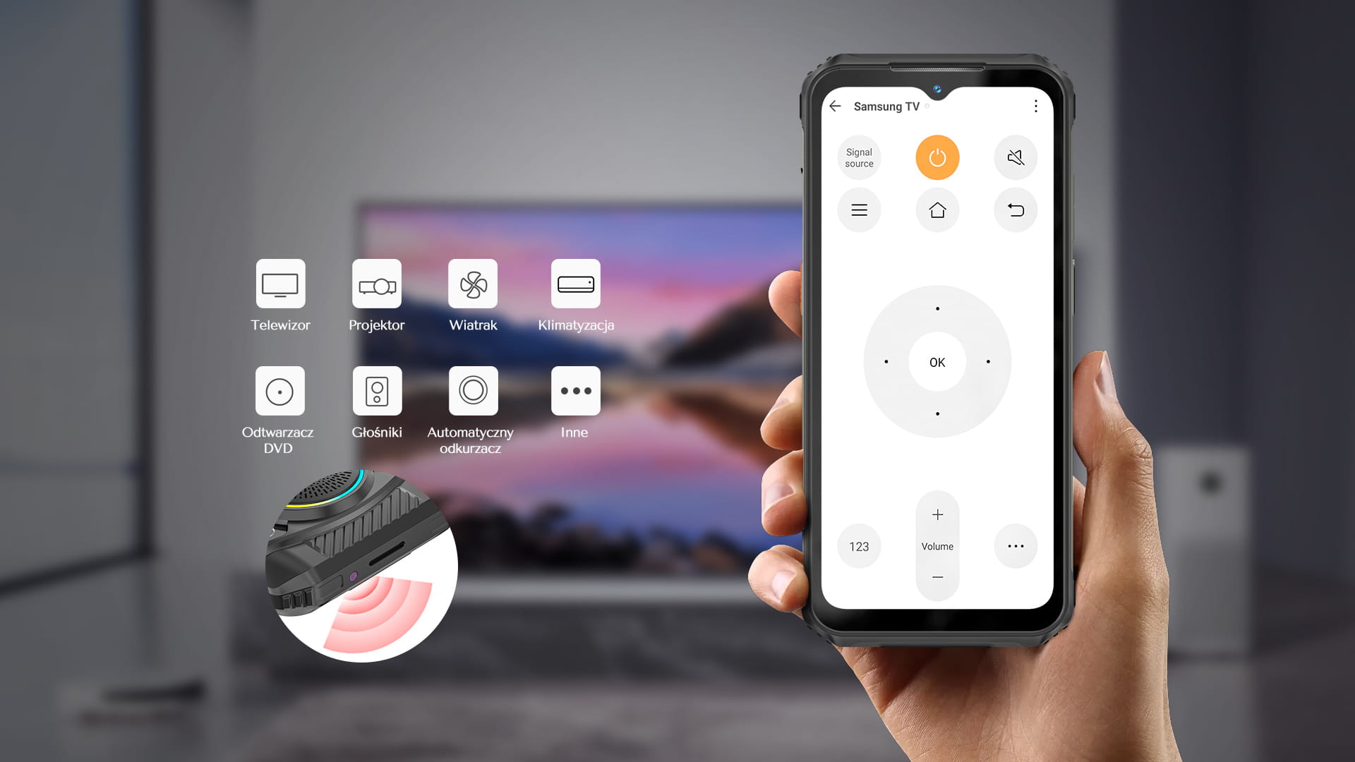 Dzięki nadajnikowi podczerwieni Armor 21 staje się uniwersalnym pilotem do telewizorów, klimatyzatorów i innych urządzeń kompatybilnych z pilotami na podczerwień.