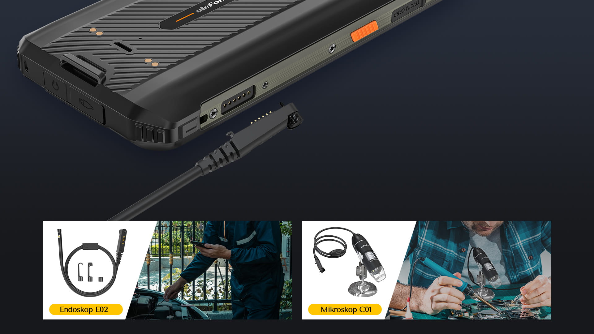 Złącze uSmart umożliwia łatwy dostęp do profesjonalnych akcesoriów, takich jak endoskop, mikroskop czy kamera noktowizyjna. Dzięki prostej instalacji, Twój Armor 21 może zamienić się w profesjonalne urządzenie wspomagające Twoją pracę.