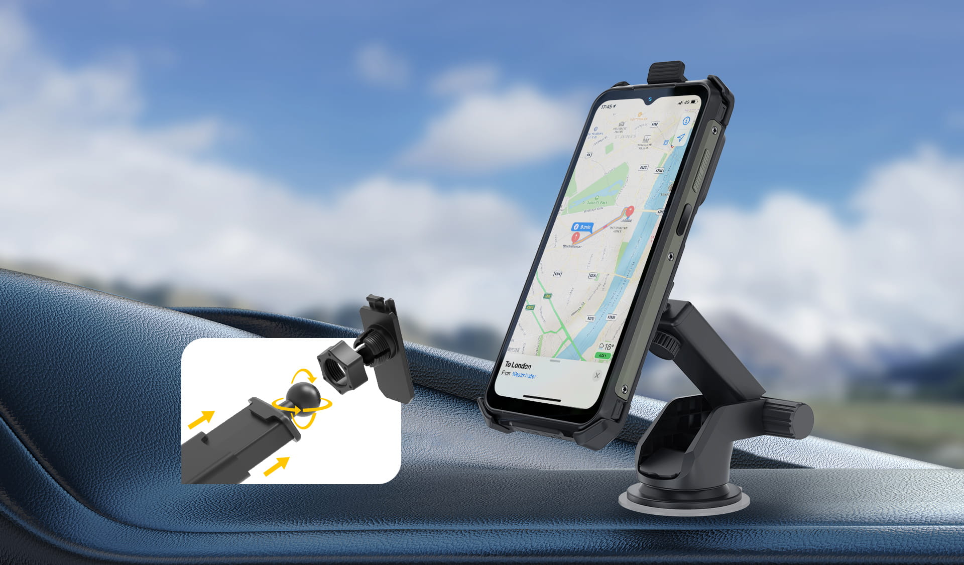 Jest to uchwyt, dzięki któremu z łatwością zamontujesz swój telefon na szybie samochodu, desce rozdzielczej, blacie roboczym lub innej płaskiej powierzchni. Możesz również regulować teleskopowe ramię, które pozwala na pochylanie i wydłużanie uchwytu od 14 do 20 cm. Uchwyt posiada możliwość dodatkowego obracania się, dzięki czemu zawsze będziesz miał dobry widok na ekran telefonu.