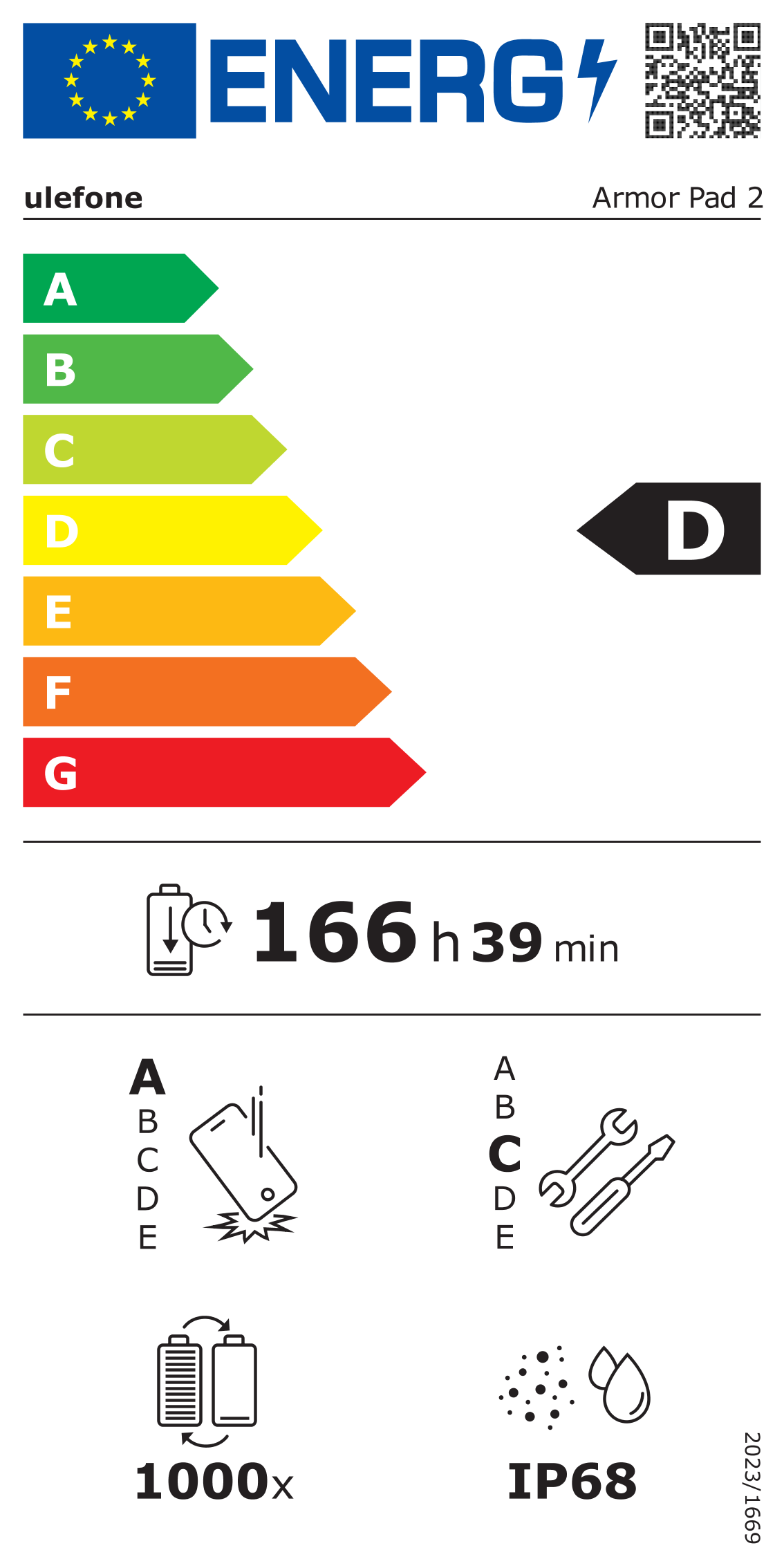 2. Dane dotyczące zużycia energii pochodzą z laboratorium Ulefone i będą się różnić w zależności od rzeczywistego użytkowania.