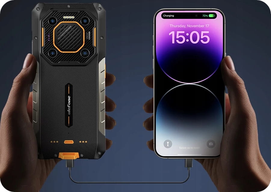 Armor 26 Ultra może działać jako powerbank i zasilać różne urządzenia, takie jak słuchawki, smartwatche, telefony i inne.